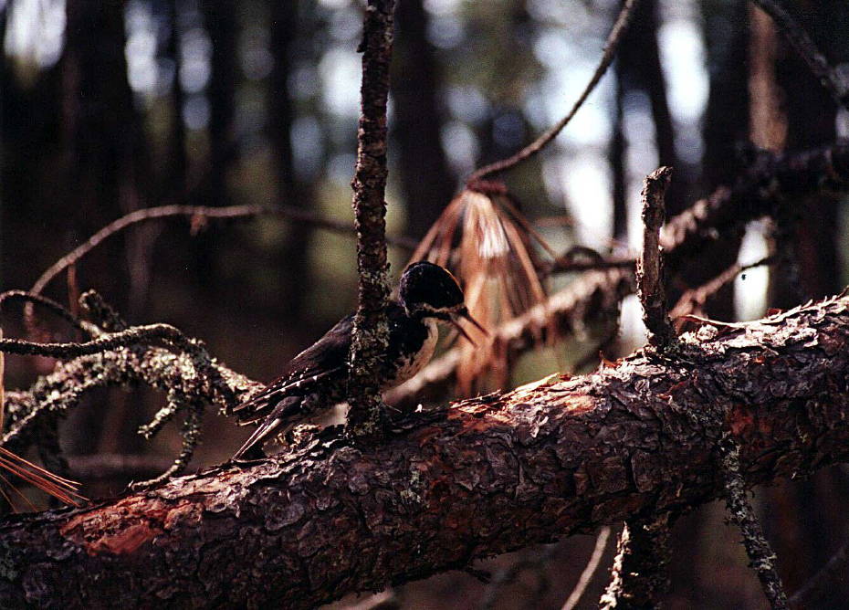This male black-backed woodpecker is a rare find! Note the yellow cap - a characteristic of only the male. These birds are uncommon even in their preferred habitat and we were fortunate to not only see him, but to get a dozen photos of him! There are only three species of woodpeckers in Western Canada that display a black back. Other woodpeckers at the campground, include the Hairy, Downy, Three-toed, Pileated, Flicker, and Yellow-bellied sapsucker!
